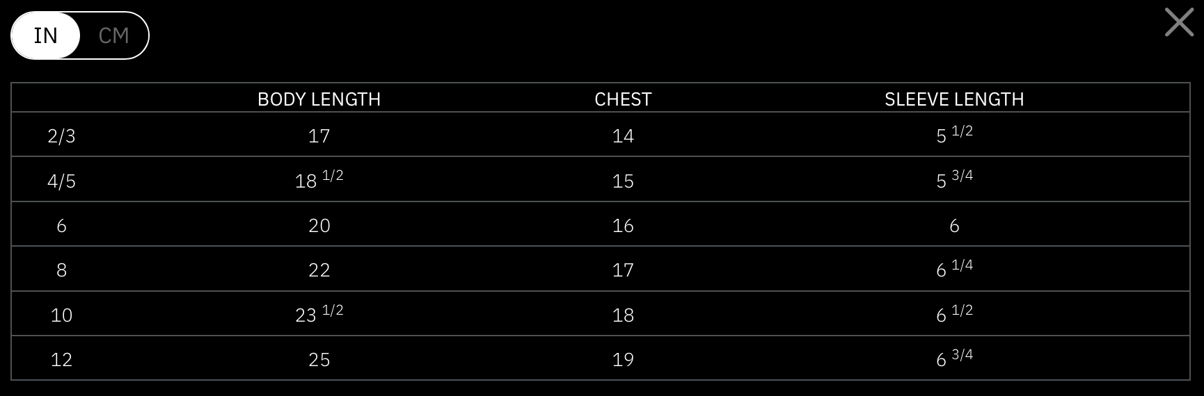 The same adult shirt you love, but smaller for children.